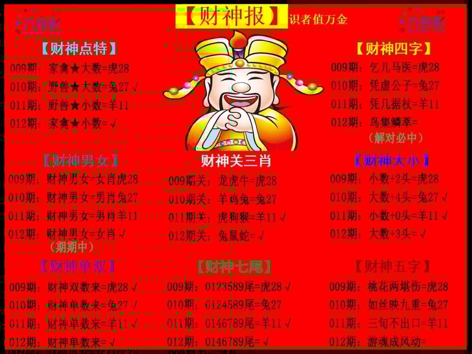 | 012期:六合彩神机网 ①肖①码稳准狠✔ |
